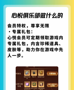 2、俱乐部的核心福利有哪些福利,是大家最关心的,手游心悦俱乐部的福利,确实很实在,是游戏内的道具和礼包,这些往往是限定的,外面买不到,比如专属头像框,稀有皮肤,或者强化材料。