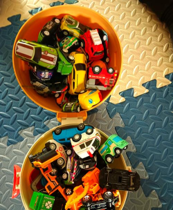 4、 让孩子参与并养成习惯收纳不是妈妈一个人的事,一定要让孩子参与进来,可以把收纳变成一个小游戏,比如,“看谁送小车回家更快”,或者,给每个收纳盒贴上可爱的标签,画上小汽车的图案,引导孩子玩完后,自己把车放回“车库”,慢慢地,他就会养成好习惯,而且,他会对自己的玩具更有归属感。