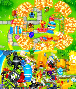 你的对手,那些气球,也绝不简单,它们种类繁多,特性各异,最基础的,红色气球,移动慢,生命值低,很容易对付,接着,会出现蓝色气球,它比红色气球,移动更快,需要,更密集的火力,还有,绿色的迷彩气球,普通的炮塔,无法锁定它,你必须建造,特定的炮塔,比如,猴村或法师,才能发现并攻击它,到了后期,甚至会出现,巨大的飞艇,它血量极厚,还会,释放小气球,对你的防线,造成巨大压力,这种,逐步升级的挑战,让游戏过程,始终充满紧张感。