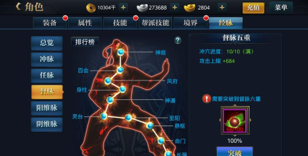 剑侠情缘手游 任脉,打通经脉技巧,提升角色战力