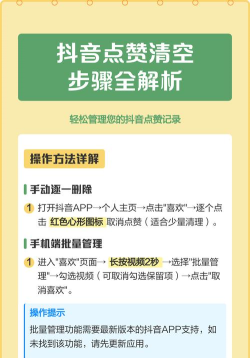 总的来说,删除抖音赞,主要靠手动取消,虽然不能批量删,但掌握方法后,整理起来也不难,记得定期清理,让你的主页更清爽。