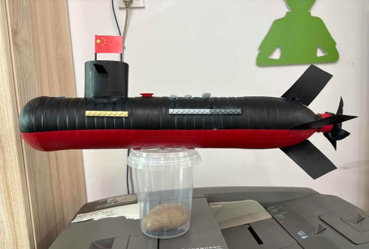 潜水艇能下潜,关键靠压载水舱,舱里装满水,潜艇就变重,于是,它就沉下去了,想上浮的时候,就用高压空气,把水舱里的水排出去,潜艇变轻了,自然就浮上水面,这个原理,叫做浮力控制,我们做模型,也要模拟这个过程。