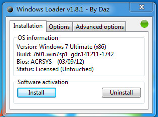 1、打开软件界面:找到并点击Windows Loader程序,打开后会看到软件的操作窗口界面。