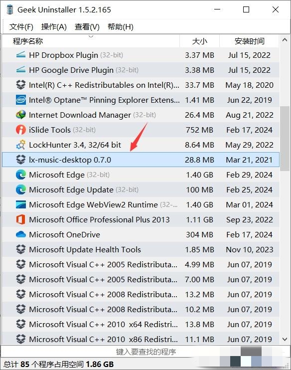 1、打开geek uninstaller,找到需要卸载的软件,如lx-music-desktop 0.7.0.右击选择卸载。