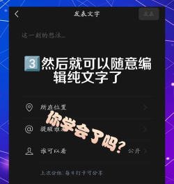 3、利用位置和权限丰富表达虽然,是纯文字内容,但朋友圈的其他功能,你依然可以使用,比如,你可以点击“所在位置”,添加一个地点,这能让你的文字,更有场景感和故事性,例如,你写“雨夜,思绪万千”,如果加上“在家里的阳台”这个位置,画面感立刻就出来了,另外,别忘了设置“谁可以看”,你可以选择公开,让所有好友看见,也可以选择私密,仅自己可见,作为个人的心情记录,或者,指定给部分好友观看,这个功能,让你在表达的同时,也能保护好隐私,非常灵活和贴心。
