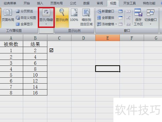 点击视图进入选项卡,找到显示/隐藏图标即可。