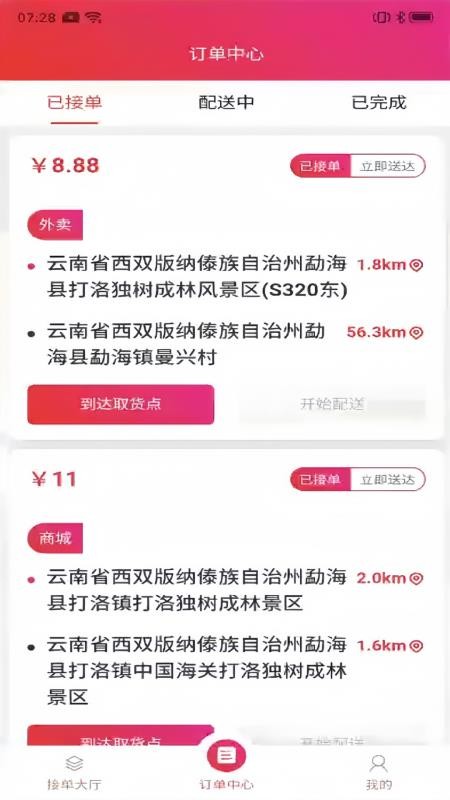 3、完成接单可开始到达取货点取货,还能及时开始为客户提供配送服务;