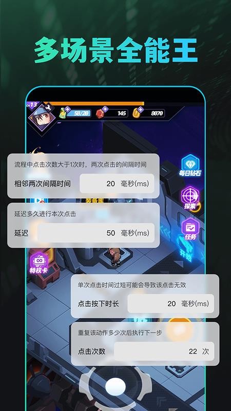 支持用户极速点击重复性任务,以便可以快速完成,极速点击操作。