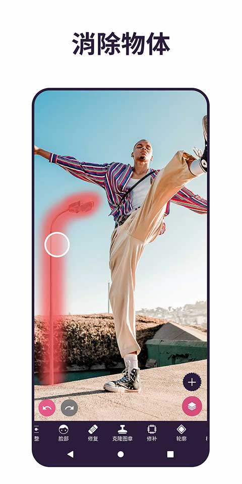 使用“移除部件”工具增强您的相片。 此工具能自动擦除小杂点、人物和不想要的东西,轻触一下,即可产出完美照片。