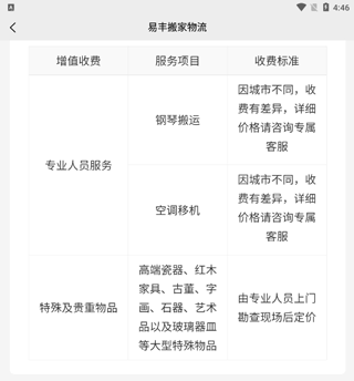 4、如有中途装卸点,里程费、楼层费按实际情况收取;