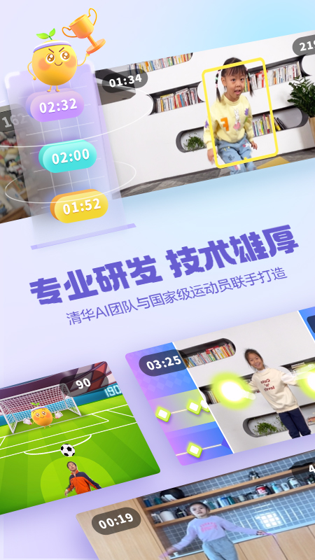 毕业于清华大学的人工智能国家重点实验室的研发团队与国家级运动员组成的专业体育研发团队联手打造,致力于为孩子们提供全方位的家庭趣味运动解决方案,随时随地提升孩子的运动表现,记录快乐成长每一步。