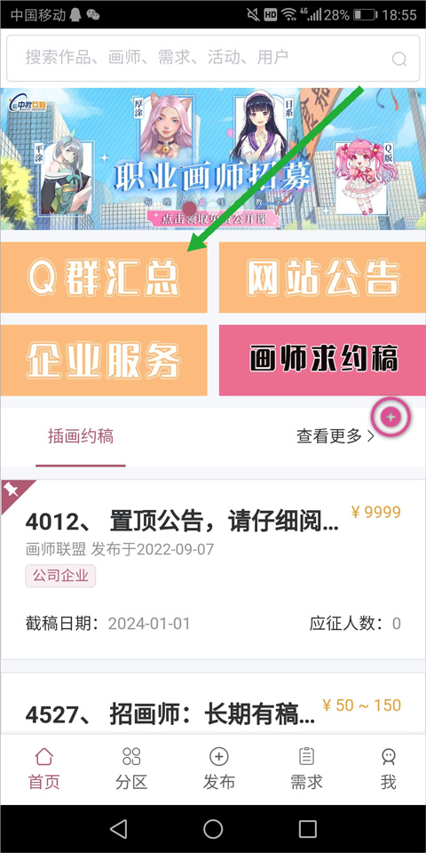 其它qq群,用户可以进入画师联盟app的【首页】中点击【Q群汇总】获取更多qq群信息